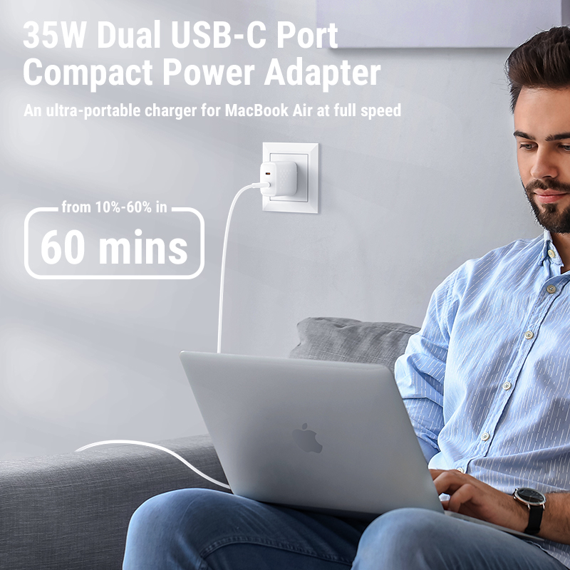 Tổng công suất 35W, cho phép sạc nhanh nhiều loại thiết bị, từ điện thoại thông minh đến máy tính bảng và một số laptop siêu mỏng;
