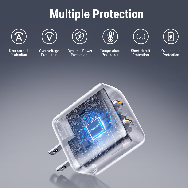 - Khi sạc đồng thời 2 thiết bị, công suất được phân bổ thông minh 2 cổng USB-C cung cấp 18w+18w, đảm bảo cả hai thiết bị đều được sạc nhanh nhất có thể;