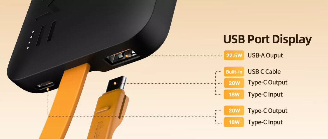 - Dung lượng 10.000mAh có thể sạc đầy khoảng 1.5-3 lần cho các thiết bị.